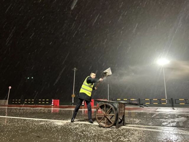 相關路段營運單位第一時間啟動除雪保通應急預案,與高速交警、路政等部門協同駐防路面重點部位,及時做好車輛疏導、交通管控、救援和事故處置等工作,盡最大努力降低雨雪天氣給道路通行帶來的影響。受寒潮天氣影響較重的山區路段迅速調配應急人員、除雪設備及物資,針對山區路段的長大橋梁、隧道出入口、陡坡彎道等關鍵節點進行重點布控,設置連續警示提醒標志,采取“小循環多頻次”模式開展融雪劑撒布作業。其中,淮河特大橋、桃墅嶺隧道等易結冰路段還首次啟用除雪融冰噴淋系統,防止橋面夜間上凍結冰。