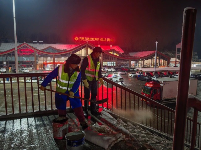 受寒潮天氣影響,1月25日夜至26日凌晨,我省沿淮淮北地區、大別山區和皖南山區溫度驟降,出現雨雪疊加天氣。集團相關單位迅速響應,連夜開展融冰除雪工作,奮力護航人民群眾春節回家路。截至1月26日上午9時,集團相關營運單位共計出動人員600余人次,機械設備280余臺班,撒布融雪劑600余噸。集團所轄路段路面無積雪,車輛有序通行。